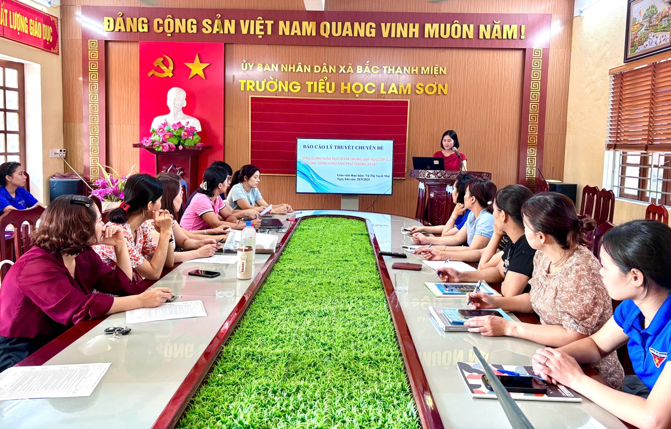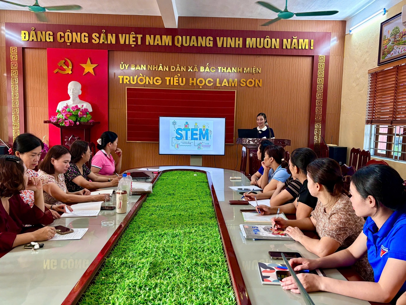 Thực hiện kế hoạch năm học 2025 - 2026, ngày 20/9/2025 Trường Tiểu học Lam Sơn đã tổ chức chuyên đề cấp trường với chủ đề “Ứng dụng giáo dục STEM trong dạy học”. Đây là hoạt động chuyên môn thiết thực, nhằm nâng cao chất lượng dạy học, đổi mới phương pháp và giúp học sinh phát triển toàn diện năng lực, phẩm chất.