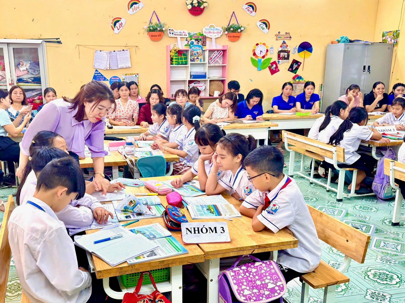 Điểm nhấn của chuyên đề là 2 tiết dạy minh họa: tiết Toán (tăng) của đồng chí Nguyễn Thị Hoa và tiết Khoa học của đồng chí Nguyễn Thị Thuỷ . Qua 2 tiết dạy, học sinh không chỉ củng cố kiến thức mà còn được tự nêu ý tưởng, thỏa sức sáng tạo để thực hành làm ra các sản phẩm vô cùng đẹp mắt phù hợp với nội dung bài học. Điều đó giúp các em phát triển tư duy khoa học và niềm say mê khám phá.
